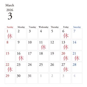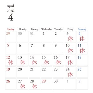 • 営業日のご案内<2月〜4月>(2月3日時点)